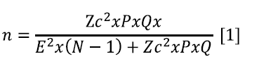 Zc = 95 % o 1,96 es el nivel de certeza, bajo la curva normal; P = 0,5 es la probabilidad de éxito; Q = 0,5 es la probabilidad de fracaso; E = 5,5 % - 0,055 es el nivel de error; y N = 181 es la población.